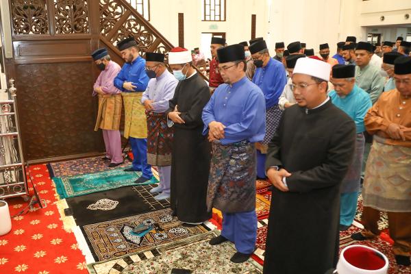 His Royal Highness and the congregation called out the takbir raya and performed their prayers, led by the mosques manager and first imam Abas Mohamad Yusof, with Selangor Mufti Datuk Anhar Opir acting as the khatib.