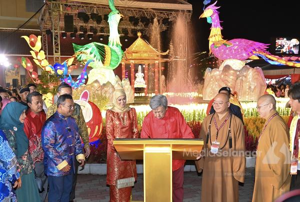 Sultan Sharafuddin and Tengku Permaisuri Norashikin later spent time visiting the lantern festival and floral exhibition on the temple grounds before departing.