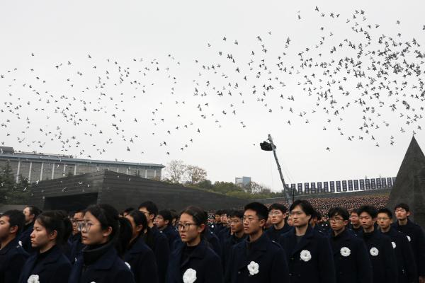During today’s ceremony at the national memorial centre in Nanjing, Shi Taifeng, head of the ruling Communist Party’s powerful organisation department, referenced Xi’s speech at a military parade in Beijing in September marking 80 years since the end of World War II.