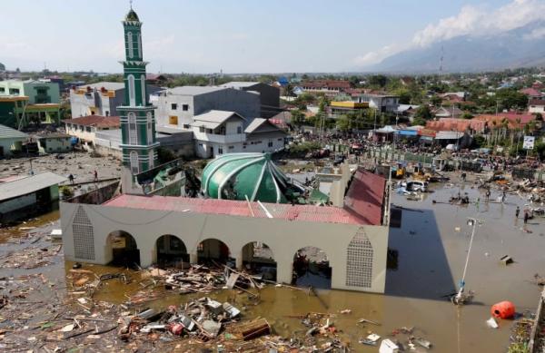 KOTA PALU 4 OKT: Sekitar Masjid Baiturrahman yang terletak di tengah bandar Kota Palu menjadi antara kawasan teruk terjejas akibat gempa bumi bermagnitud 7.4 pada skala Richter dan kejadian tsunami di sini, Jumaat lalu.