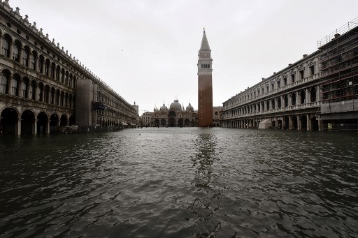 Banyak dataran dan laluan pejalan kaki di Venice tenggelam oleh paras banjir paling tinggi dalam tempoh sedekad ini di bandar terusan tersebut.