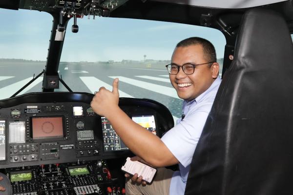 Amirudin turut berpeluang merasai sendiri pengalaman memandu helikopter menerusi ruang simulator milik PWN Excellence.