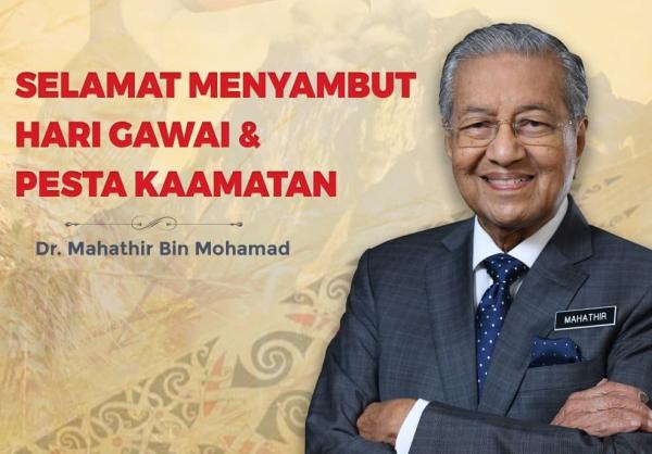 KUALA LUMPUR, 1 JUN: Perdana Menteri, Tun Dr Mahathir Mohamad dan isteri, Tun Dr Siti Hasmah Mohd Ali hari ini mengucapkan selamat menyambut Hari Gawai dan Pesta Kaamatan kepada rakyat di Sabah dan Sarawak.