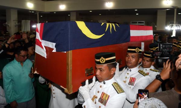 Lebih 1,000 hadirin termasuk anggota keluarga, kenalan rapat dan petugas media menunggu ketibaan jenazah pada 1.48 pagi untuk memberi penghormatan terakhir dan menyempurnakan solat jenazah.