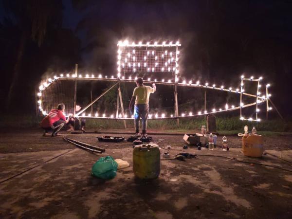 BAGAN SERAI, 1 MEI: Sekumpulan enam anak muda yang bersimpati dengan tragedi tenggelamnya KRI Nanggala 402 di perairan Bali, Indonesia telah mereka replika kapal selam itu sebagai panjut di Kampung Bukit Merah, Semanggol.