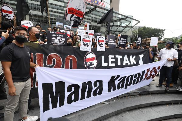 Beliau berkata individu berkenaan telah mengadakan perhimpunan sambil memegang beberapa plakad dan kain rentang bertulis antaranya ‘Keselamatan Negara Terancam Kesiagaan Tentera Laut Diraja Malaysia (TLDM) Terjejas’, ‘H20 Letak Jawatan’ dan ‘Siasat Di Mana Kapal’.