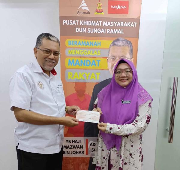 SHAH ALAM, 8 JUN: Sejumlah RM2,500 disumbangkan Dewan Undangan Negeri Sungai Ramal untuk Pertubuhan Alumni Pendidikan Dar al-Hikmah, semalam.