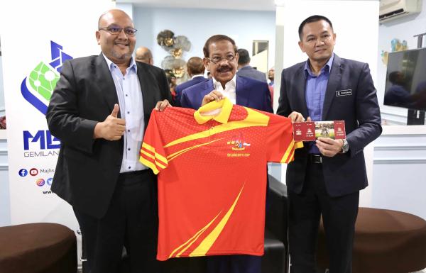 Pengerusi dan Pengurus Pasukan Piala Sultan Selangor Tan Sri Abd Karim Shaikh Munisar (tengah) bersama Datuk Bandar MBSJ Dato’ Amirul Azizan Abd Rahim dan Timbalan Datuk Bandar MBSJ Mohd Zulkurnain Che Ali bergambar pada program Siri Jelajah Promosi dan Penyerahan Tiket Piala Sultan Selangor 2024 di Ibu Pejabat MBSJ, Subang Jaya pada 24 JULAI 2024. Foto MOHD KHAIRUL HELMY MOHD DIN/MEDIA SELANGOR[/caption]