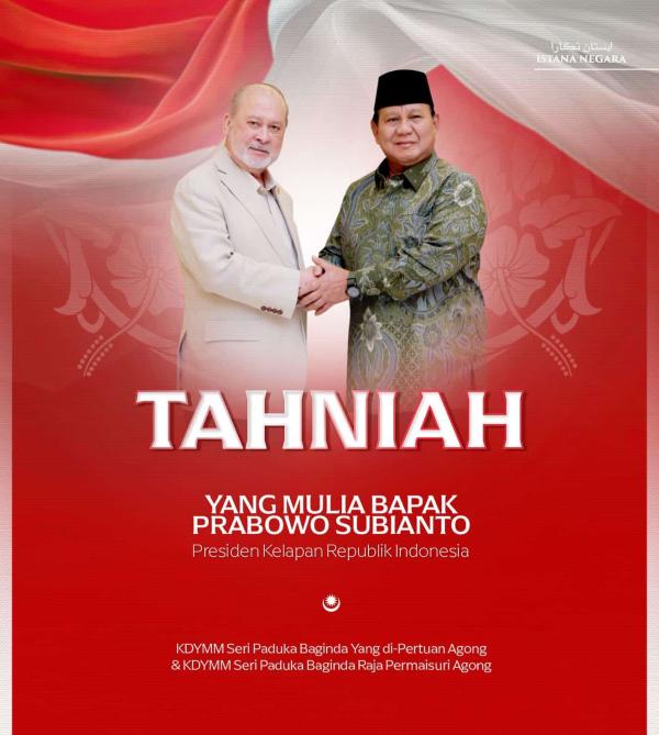 Ucapan itu dizahirkan menerusi poster khas yang turut memaparkan gambar Sultan Ibrahim dan Prabowo berjabat tangan, yang dimuat naik di laman Facebook Sultan Ibrahim Sultan Iskandar.