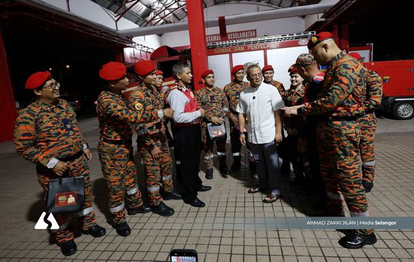 Dato' Menteri Besar Dato' Seri Amirudin Shari membuat pengumuman penghargaan sempena sambutan Hari Raya Aidilfitri kepada semua warga Jabatan Bomba dan Penyelamat (JBPM) Selangor dalam Program Mb Singgah Syawal di Balai Bomba dan Penyelamat Bukit Jelutong, Shah Alam pada 19 Mac 2026. Foto AHMAD ZAKKI JILAN/MEDIA SELANGOR