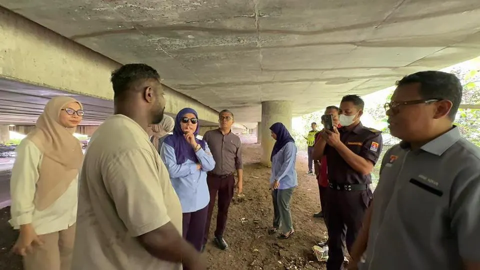 Yang Dipertua Majlis Perbandaran Sepang (MPSepang) Dr Ani Ahmad bersama anggota penguat kuasa MPSepang meninjau kandang lembu yang didapati beroperasi di bawah jambatan Lebuhraya PLUS (Putrajaya Link) di Cyberjaya pada 30 Mac 2026. Foto Facebook Majlis Perbandaran Sepang