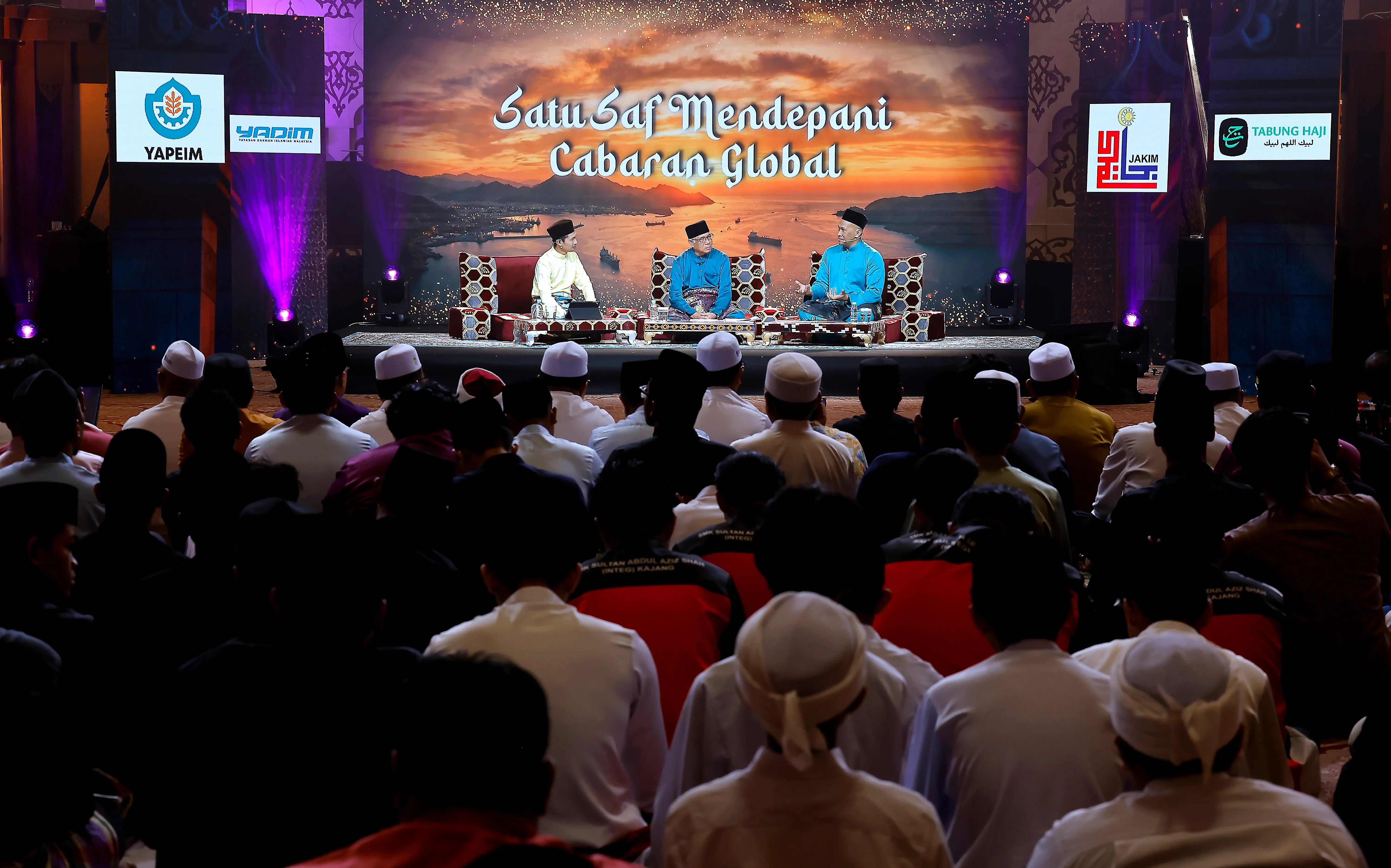 PUTRAJAYA, 9 APRIL: Forum Perdana Hal Ehwal Islam bertajuk “Satu Saf: Mendepani Cabaran Global” anjuran Jabatan Kemajuan Islam Malaysia (JAKIM) dengan kerjasama 13 agensi di bawah Menteri di Jabatan Perdana Menteri (Hal Ehwal Agama) berlangsung malam ini bagi memberi pencerahan kepada masyarakat mengenai krisis tenaga global serta impaknya kepada negara.
