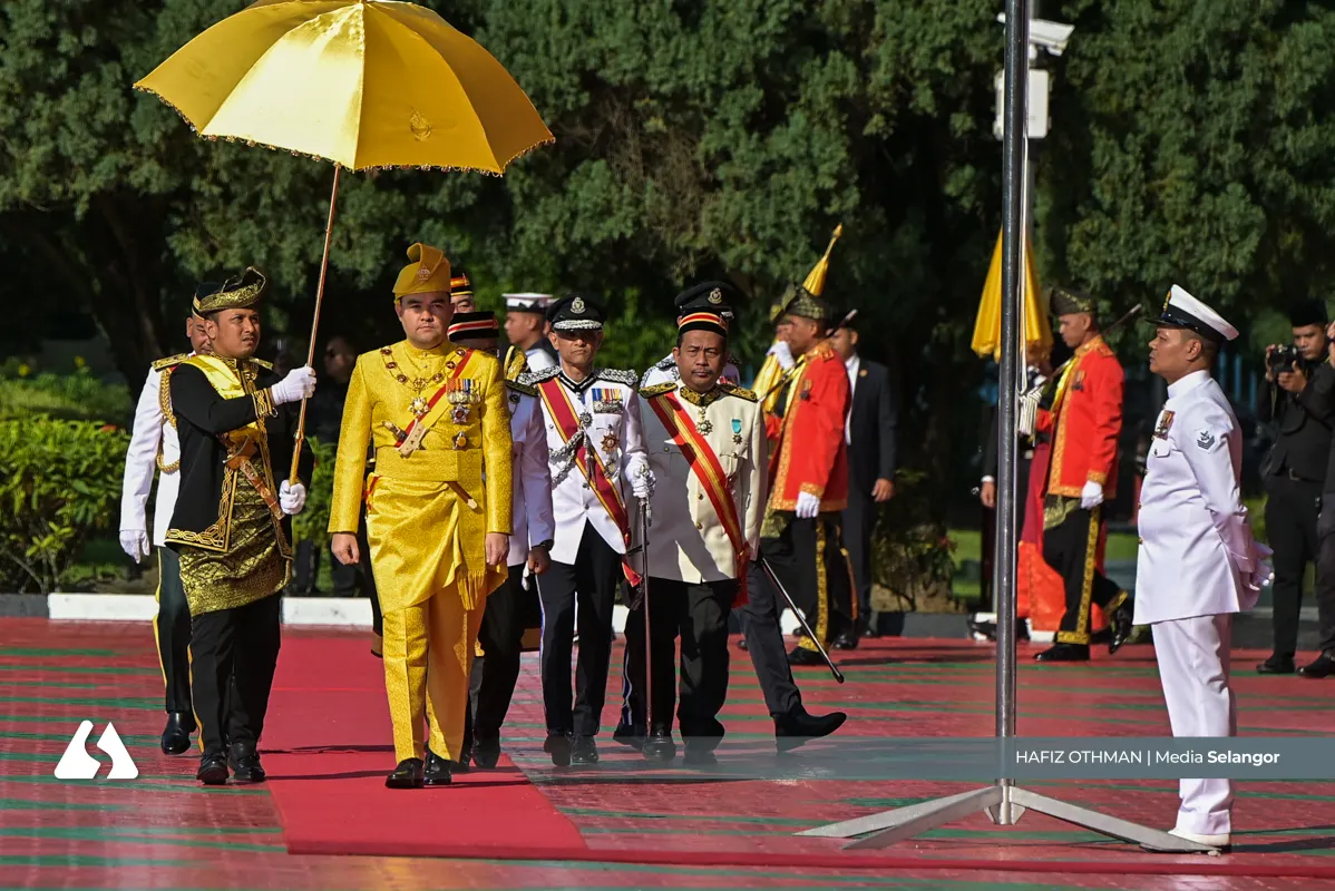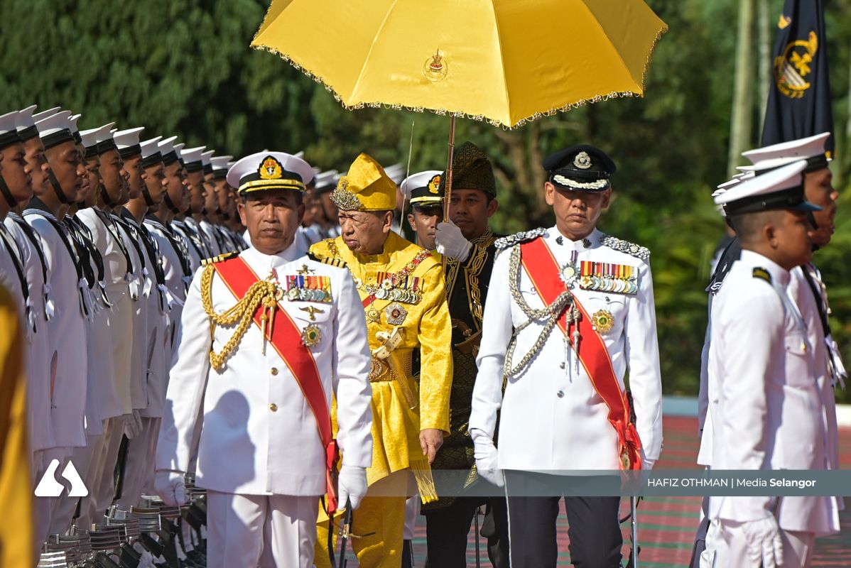 Duli Yang Maha Mulia Sultan Selangor Sultan Sharafuddin Idris Shah Alhaj berkenan mencemar duli membuat pemeriksaan kawalan kehormat utama ketika Istiadat Pembukaan Mesyuarat Penggal keempat Dewan Negeri Selangor, Shah Alam pada 20 April 2026. Foto HAFIZ OTHMAN/MEDIA SELANGOR.