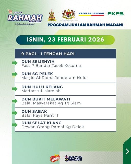 (莎阿南22日讯)益山慈悯市集明日(23日)来到雪兰莪6个地点大促销,欢迎当地居民前来采购应有尽有的厨房食材和日用品!